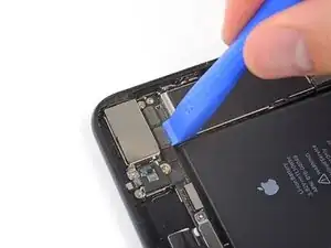Используйте плоский конец лопатки или ноготь, чтобы отключить два нижних коннектора дисплея, приподняв их прямо вверх из гнёзд на материнской плате.