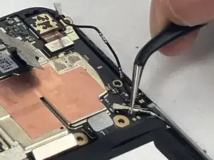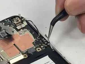 С помощью пинцета отведите белый коаксиальный разъём от платы.