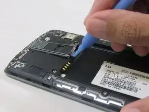 С помощью пластикового инструмента подденьте задние кнопки вверх, чтобы снять их с корпуса телефона.