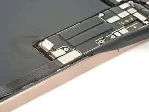 Тонкий кабель, соединяющий заднее стекло с iPhone, рядом с кнопкой увеличения громкости. Не вставляйте пластину сюда, чтобы не перерезать кабель.