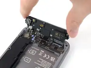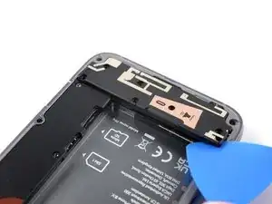 Проведите лезвием влево от динамика, чтобы освободить защёлки, удерживающие его на месте.