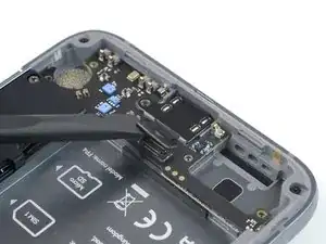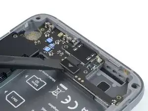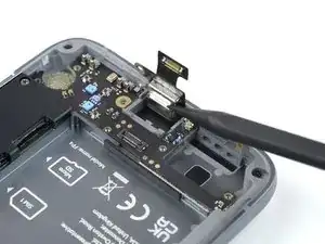 Используйте лопатку, чтобы отключить разъём зарядки, поддев коннектор прямо вверх из его разъёма.