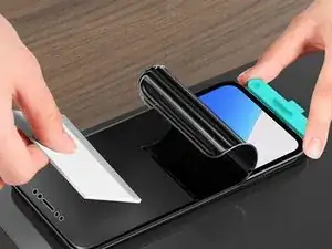 Используйте пластиковый инструмент для поддевания, чтобы аккуратно поднять один угол существующего защитного стекла. Постепенно снимайте его, применяя легкое давление, чтобы освободить клей. Обратите внимание: будьте осторожны, чтобы не повредить экран или окружающие компоненты в процессе.