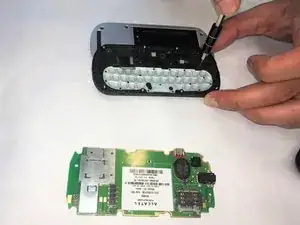 Шесть винтов диаметром 2 мм соединяют часть с клавиатурой с противоположной стороной телефона. Используя крестовую отвёртку №000, удалите винты и разъедините две половины телефона.