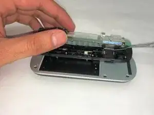 С помощью крестовой отвёртки №000 удалите восемь винтов диаметром 2 мм, расположенных на задней панели устройства. В процессе снятия винтов разместите их в небольшой ёмкости или на магнитном коврике, чтобы не потерять.