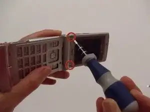 Удалите винт длиной 4.4 мм в каждом углу с помощью отвертки Tri-wing Y0.