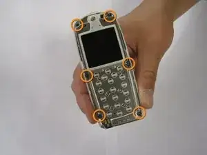 С помощью отвертки открутите 6 винтов Torx диаметром 7 мм на передней части телефона.