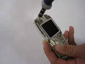 После удаления винтов снимите переднюю панель телефона, чтобы увидеть внутренние электронные компоненты.
