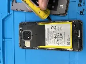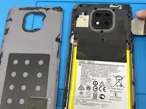 Нагрейте заднюю панель Moto G Power с помощью термофена или нагревателя iOpener.