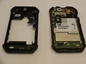 После того как все винты удалены, задняя и боковые части должны отойти от передней панели телефона, обнажив материнскую плату и различные компоненты, как показано.