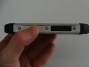 Положите телефон экраном вниз и разместите большой палец на желтом и черном переключателе. Сдвиньте переключатель вправо, чтобы разблокировать заднюю крышку для снятия.