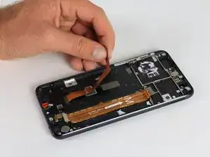 Осторожно оттяните лентовый кабель, соединяющий ЖК‑дисплей с корпусом телефона.