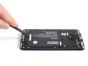 Используйте край лопатки, чтобы аккуратно поддеть и отключить шлейф сенсора отпечатка пальца.