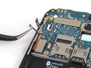 Используйте пинцет, чтобы аккуратно поддеть и отключить антенный кабель.
