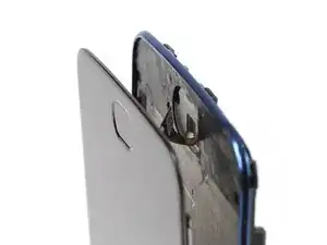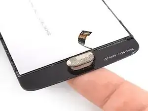 Пока не пытайтесь полностью отсоединять дисплей. Гибкие кабели сканера отпечатков пальцев и дисплея всё ещё проходят сквозь корпус и могут прилипнуть к нему.