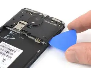Вставьте ноготь или лопатку в выемку в нижнем правом углу, чтобы начать отделение корпуса телефона от задней крышки.