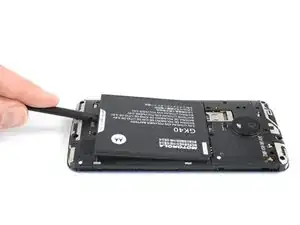 Используйте ноготь или лопатку, чтобы поддеть батарею за выемку в нижней части.