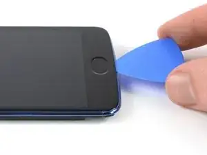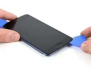 Проведите лопаткой до верхнего левого угла телефона, чтобы разрезать клей.