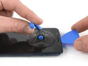 Потяните присоску вверх и вставьте лопатку под дисплей.