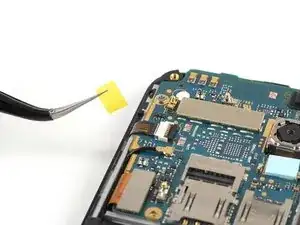 Используйте пинцет, чтобы отклеить жёлкую ленту разъема ZIF, расположенного слева от материнской платы.