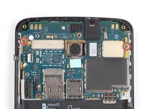 Снимите два винта Phillips #00 длиной 2,9 мм, крепящих материнскую плату.