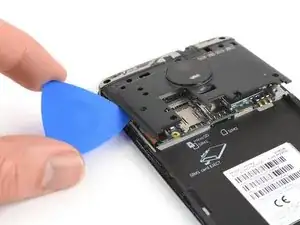Переместитесь в нижний левый угол и аккуратно подденьте телефон, чтобы отделить его от задней крышки.