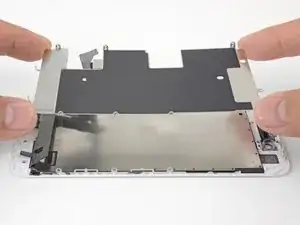 Аккуратно поднимите защитную пластину LCD от сборки дисплея.