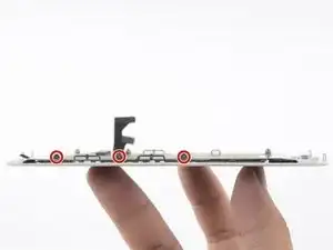 Снимите этот винт первым. Сильное давление может выгнуть скобу кнопки «Домой», если сначала снять винты 1.3 мм.