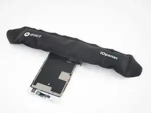 Нагрейте iOpener и положите его поверх кромки экрана, ближайшей к кнопке "Домой", чтобы размягчить клей, удерживающий её на месте.