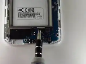 Извлеките аккумулятор из отсека, поддев его пальцем в канавке на нижнем конце отсека для аккумулятора.