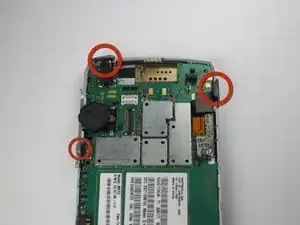 Примечание: легче снять плату, поддев и приподнимая её в верхней части левого угла телефона.