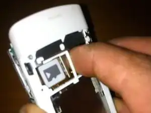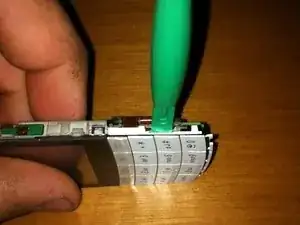 С помощью пластикового инструмента извлеките маленький кусок пластика в нижней части телефона.