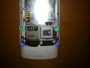 Удалите три черные винта по 3 мм в верхней части телефона.