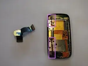 Снимите 3 винта, фиксирующие гибкий кабель.