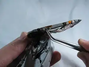 Осторожно снимите серую пластиковую крышку в верхней задней части секции ЖК-дисплея с помощью лопатки.