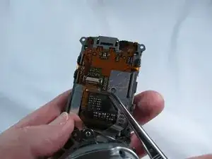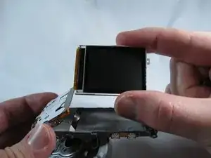 Снимите ЖК-экран за его белый корпус, протянув гибкий кабель через вырез с другой стороны корпуса.
