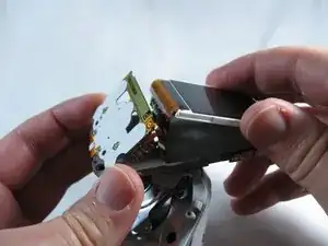 ЖК-дисплей соединён с устройством небольшим гибким кабелем. Чтобы освободить кабель, переведите маленький фиксатор на разъёме в вертикальное положение.