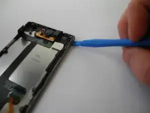 Используйте пластиковый инструмент для вскрытия, чтобы начать снятие сенсорного экрана.