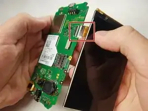 Пальцами аккуратно извлеките шлейф, соединяющий дигитайзер с платой.