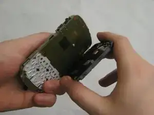 Отодвиньте металлическую пластину от передней панели телефона.