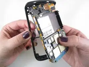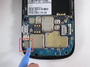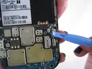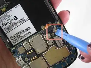 Переверните телефон. Используя большой пластиковый инструмент для вскрытия, отожмите ЖК-экран от материнской платы.