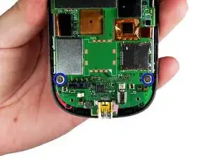 Удалите два винта, расположенные внизу слева и справа от материнской платы, используя маленькую крестовую отвёртку.