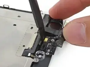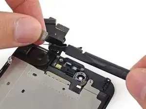 Держав фронтальную камеру в стороне, используйте острый конец лопатки, чтобы поджать датчик окружающего освещения и вынуть его из углубления в передней панели.