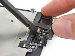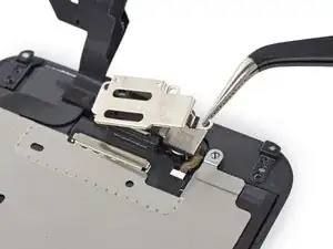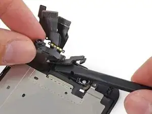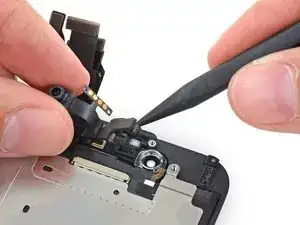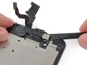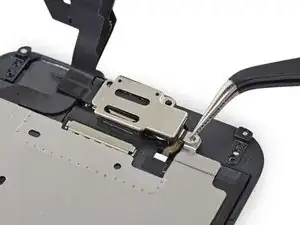 Подогните кабель фронтальной камеры и датчиков вверх, чтобы получить доступ к микрофону.