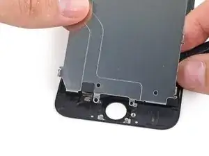 Будьте крайне осторожны при отлеплении кабеля кнопки «Домой». Это хрупкий кабель. Если вы ощущаете больше чем лёгкое сопротивление, прекратите и примените тепло феном или iOpener, чтобы размягчить клей, затем попробуйте снова.