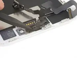 Не пытайтесь полностью отделить дисплей — несколько хрупких ленточных кабелей всё ещё соединяют его с платой логики iPhone.