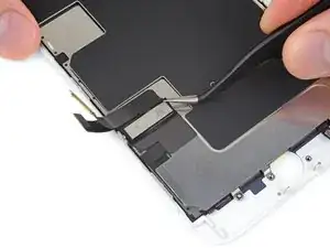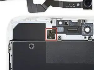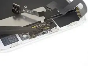 Осторожно сложите камеру вместе с прикреплённым шлейфом вниз, к нижней части iPhone, чтобы получить доступ к компонентам под ней.