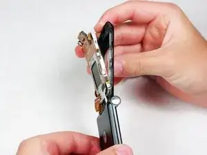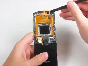 Используйте пластиковый инструмент для вскрытия, чтобы отжать верхнюю крышку от телефона.