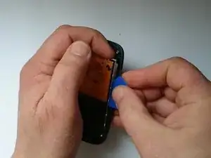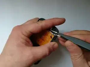 В четырёх углах ЖК-дисплея находятся небольшие металлические пластины. Используйте одну из них, чтобы немного приподнять ЖК-дисплей и подвести пластиковый инструмент.
