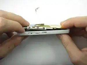 Отогните восемь защёлок, фиксирующих заднюю крышку к остальной части телефона, как показано на второй фотографии.